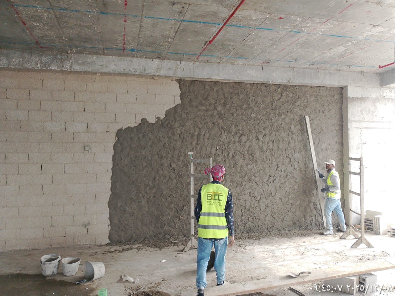 تجهيز الجدران الداخلية والخارجية لتحقيق أعلى درجات الجودة والتماسك.